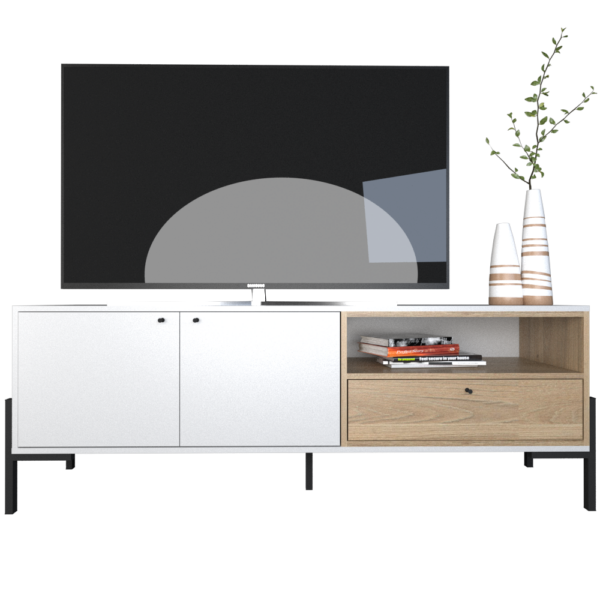 Bahiut fabricado en madera paraíso combinado con puertas laqueadas blancas