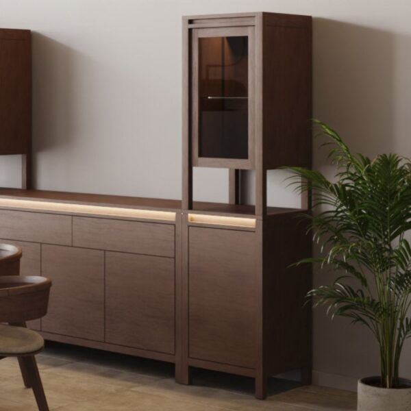 El complemento perfecto para un comedor con estilo. El Bahiut Grandis es mucho más que un mueble; es una pieza diseñada para realzar la elegancia y funcionalidad de tu comedor. Su fabricación en eucaliptus Grandis garantiza durabilidad y una estética única, ideal para hogares modernos y sofisticados.