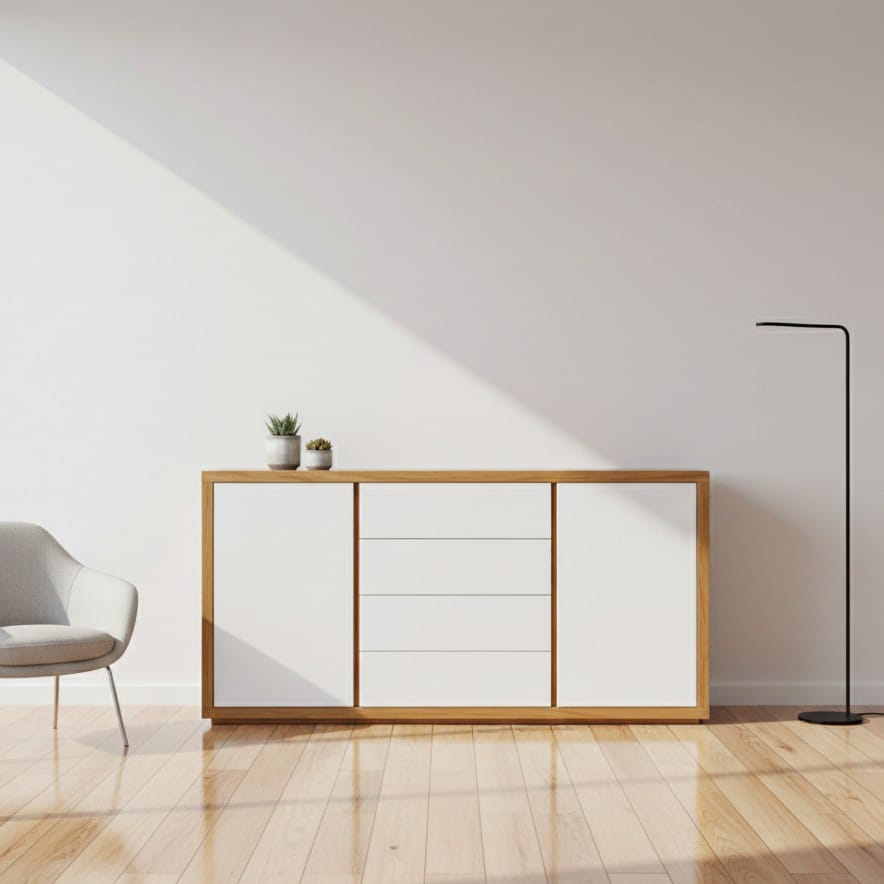 Bahiut fabricado en madera guatambu y madera laqueada blanca