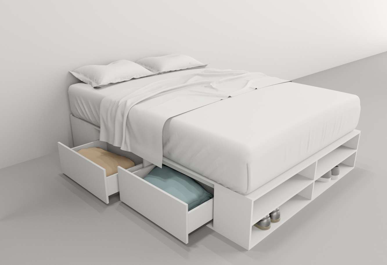 BASE CON CAJONES BLANCO 1.40