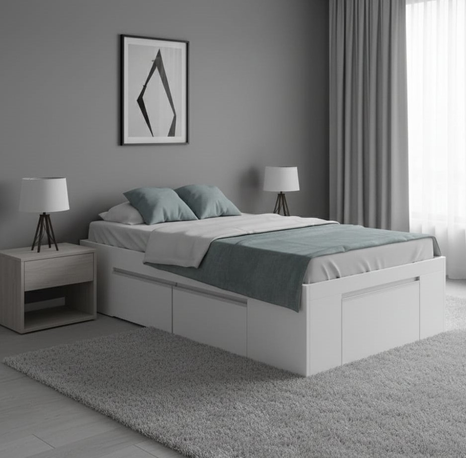 - El armado de la cama permite colocar los cajones en cualquiera de los dos lados de la cama.