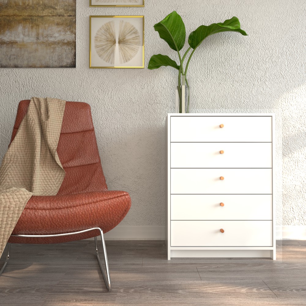 Con cinco cajones amplios, este chifonier garantiza un guardado cómodo y eficiente, ideal para dormitorios modernos y ambientes donde le orden es prioridad.
