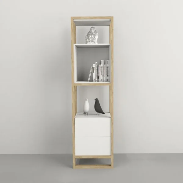 La Columna 2 Cajones es el complemento perfecto para tu hogar. Con su elegante diseño en color Olmo Finlandés/Negro y Olmo Finlandés/Blanco se adapta a cualquier estilo de decoración. Su estructura garantiza resistencia y durabilidad. Cuenta con dos cajones para organizar tus pertenencias de manera práctica y funcional. Además, sus tres estantes ofrecen espacio adicional para exhibir tus objetos favoritos