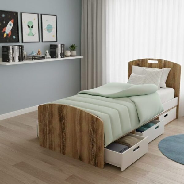 Cómoda fabricada en MDF macizo laqueado en blanco y tapa en madera paraiso.