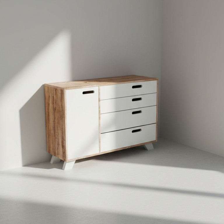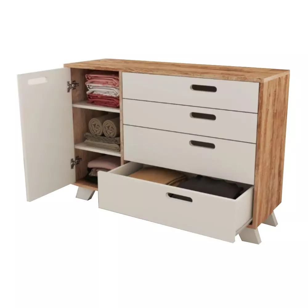 Fabricado en melamina texturada valiant en color atakama combinado con MDF laqueado