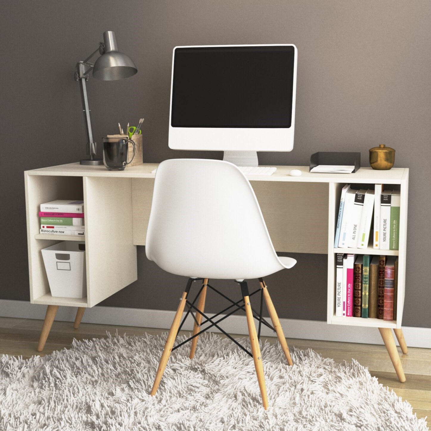 El escritorio escandinavo con estantes es una invitación al orden y al diseño. Sus patas de madera maciza aportan la resistencia y estabilidad necesaria para crear tu espacio de trabajo ideal.