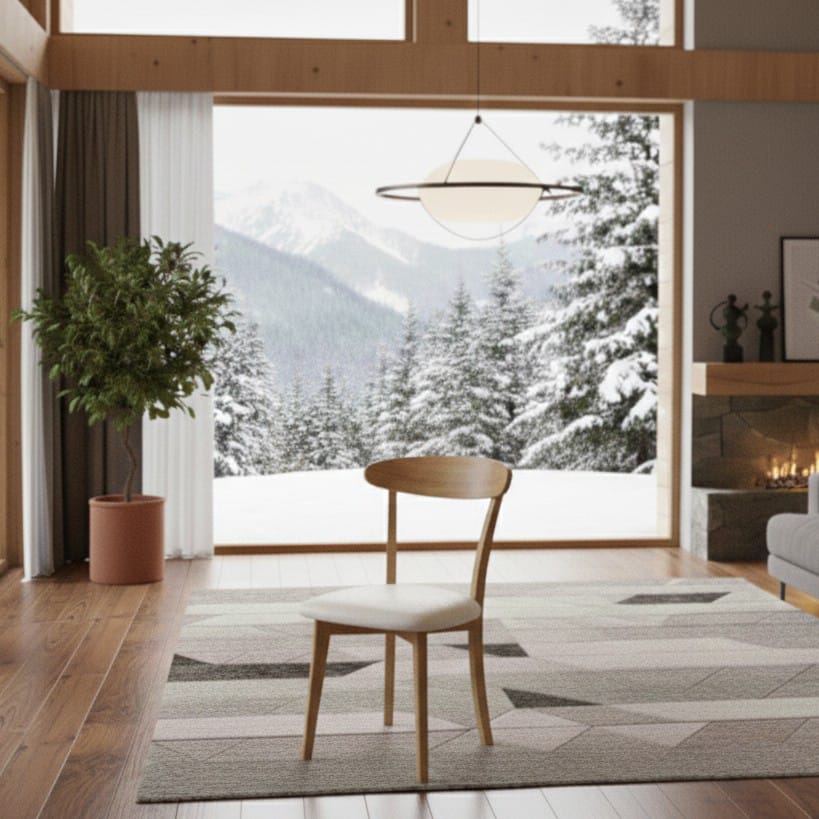 Las sillas, confeccionadas en madera paraíso, presentan un respaldo bajo con formato curvo que ofrece comodidad y un diseño contemporáneo.