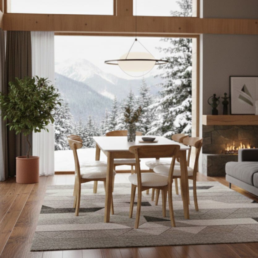 Diseño, calidez y funcionalidad se combinan en este juego de comedor fabricado con materiales nobles y terminaciones de alta calidad.