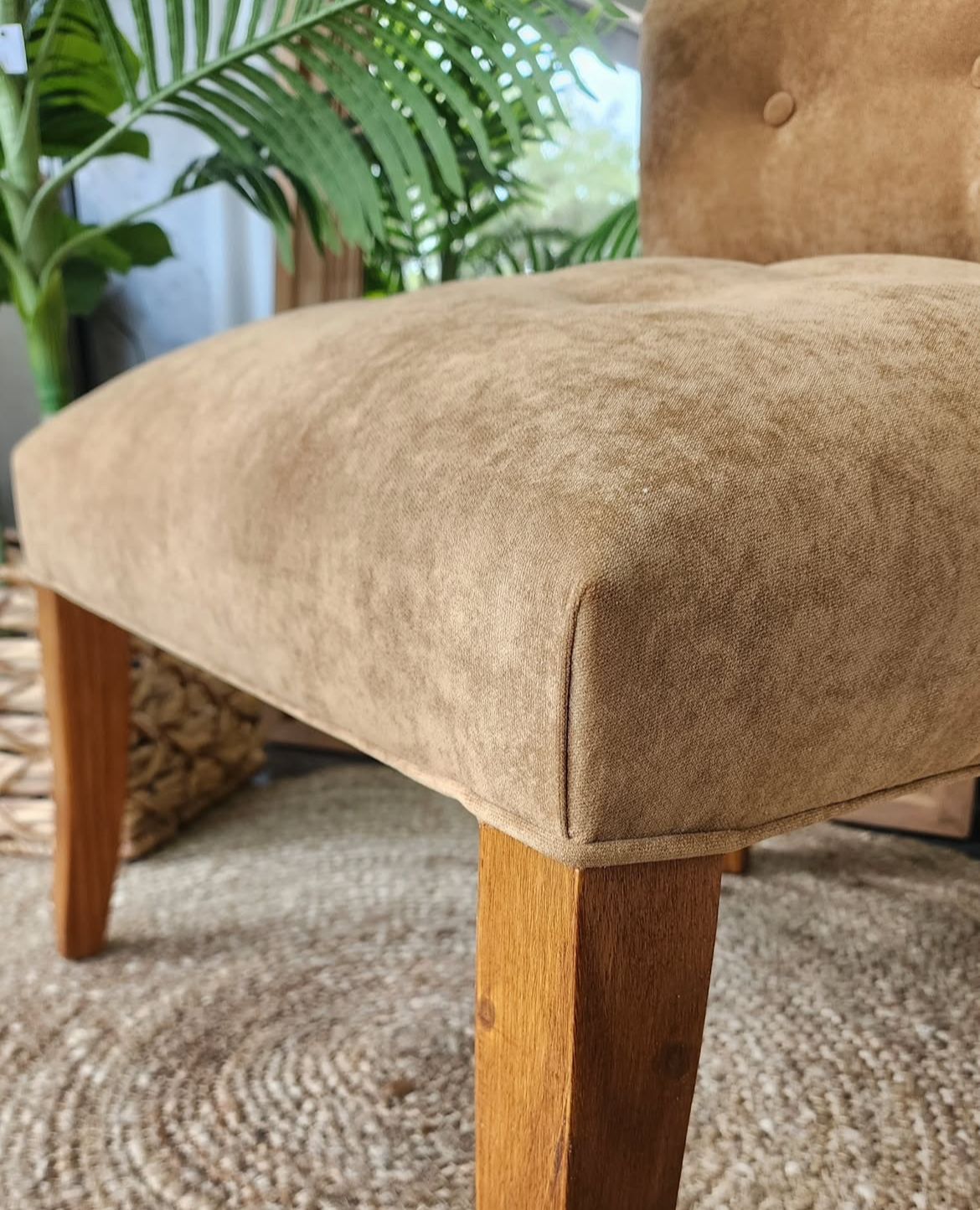 Diseñada para un descanso óptimo, con un respaldo y asiento que se amoldan a la postura relajada típica del ritual del mate. Construida para perdurar, con maderas seleccionadas y tapizados resistentes y de fácil mantenimiento