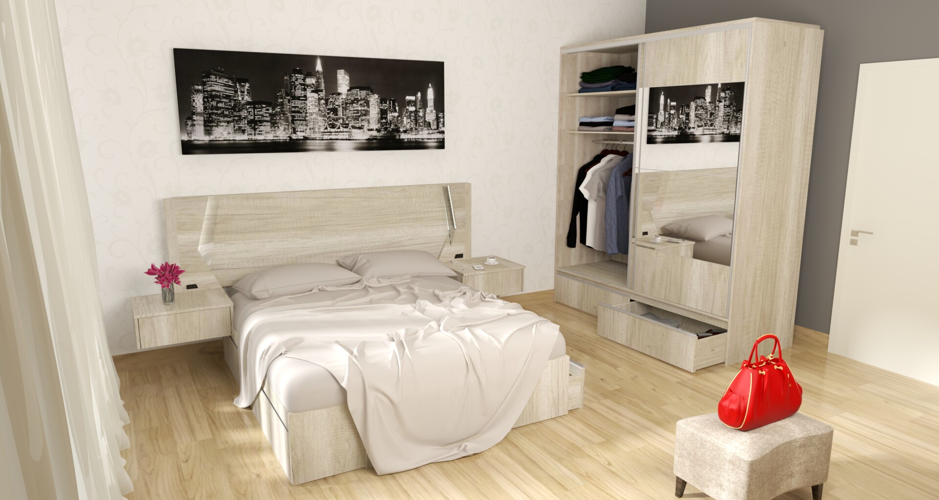 Mesa de luz flotante, moderna y cómoda. Ideal para optimizar el espacio en tu habitación. Cuenta con un amplio cajón.