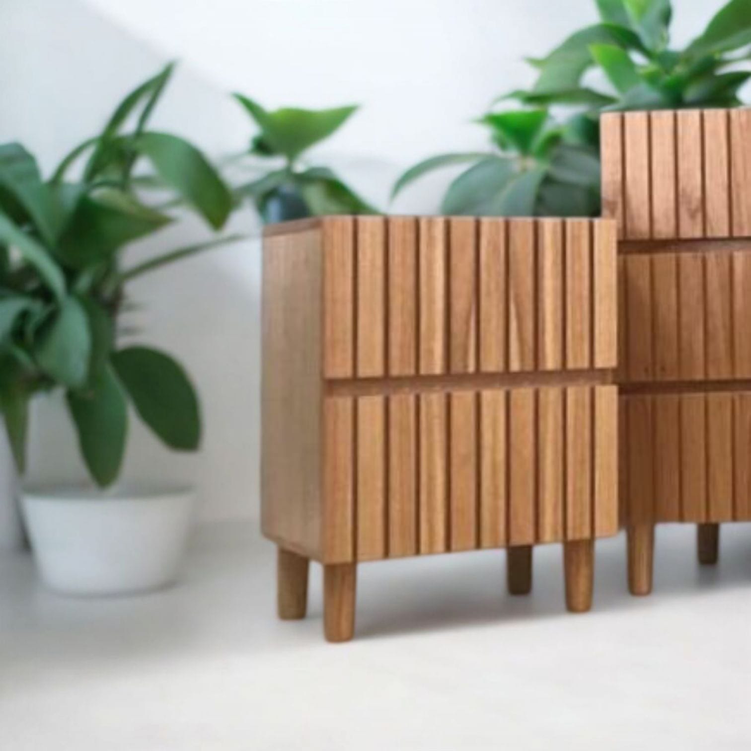 Fabricada en madera Paraiso ranurada, con terminación de alta calidad.