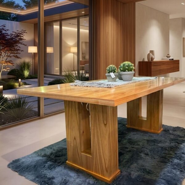 La mesa de la línea industrial es un producto logrado mediante la combinación de melamina símil madera color Atakama y las patas negras de hierro maciza.