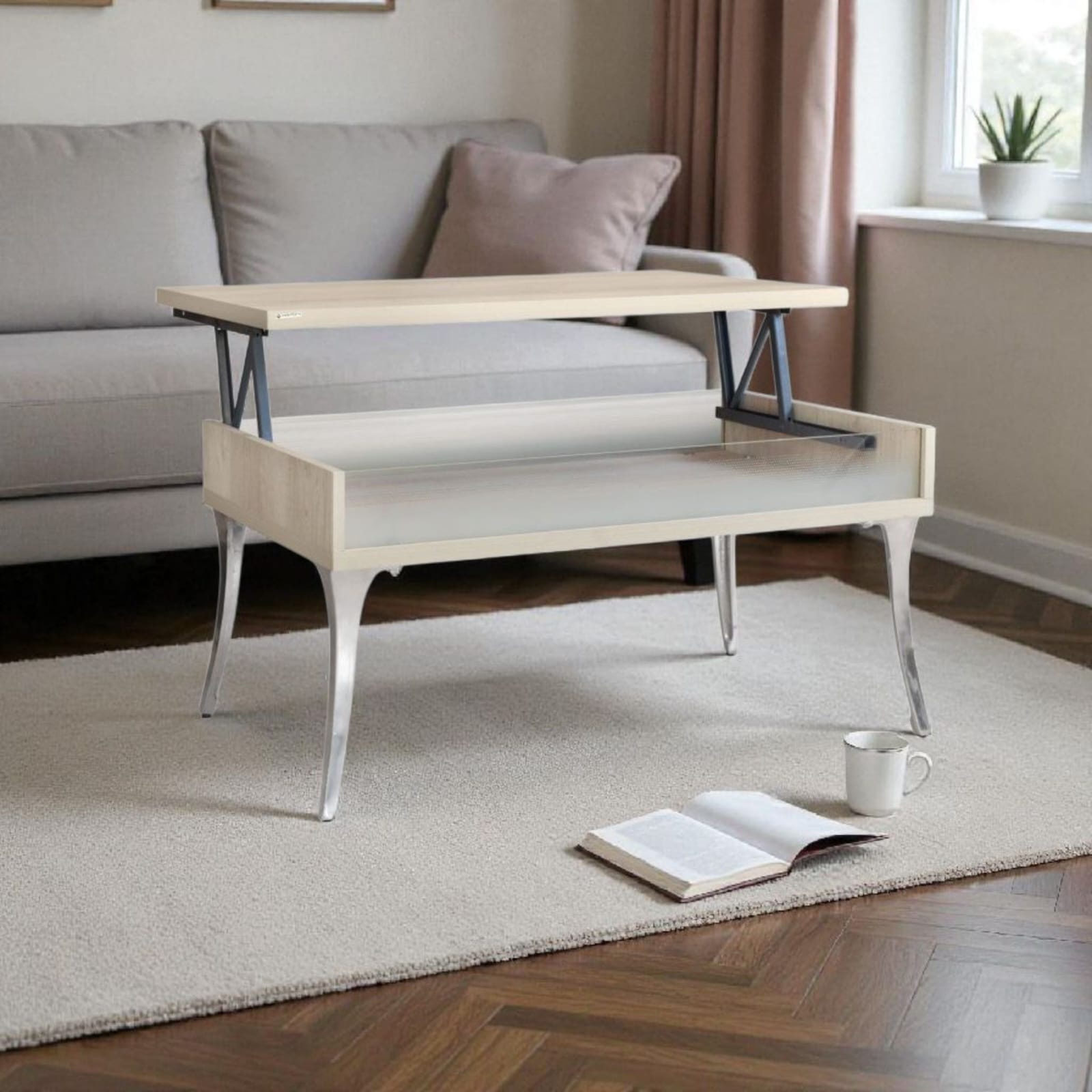 La Mesa Ratona Luar Elevable combina estilo y practicidad con su sistema elevable, patas de aluminio y cajón interno para un almacenamiento discreto. Su diseño elegante en colores Helsinky y Terrarum aporta modernidad y calidez al living.