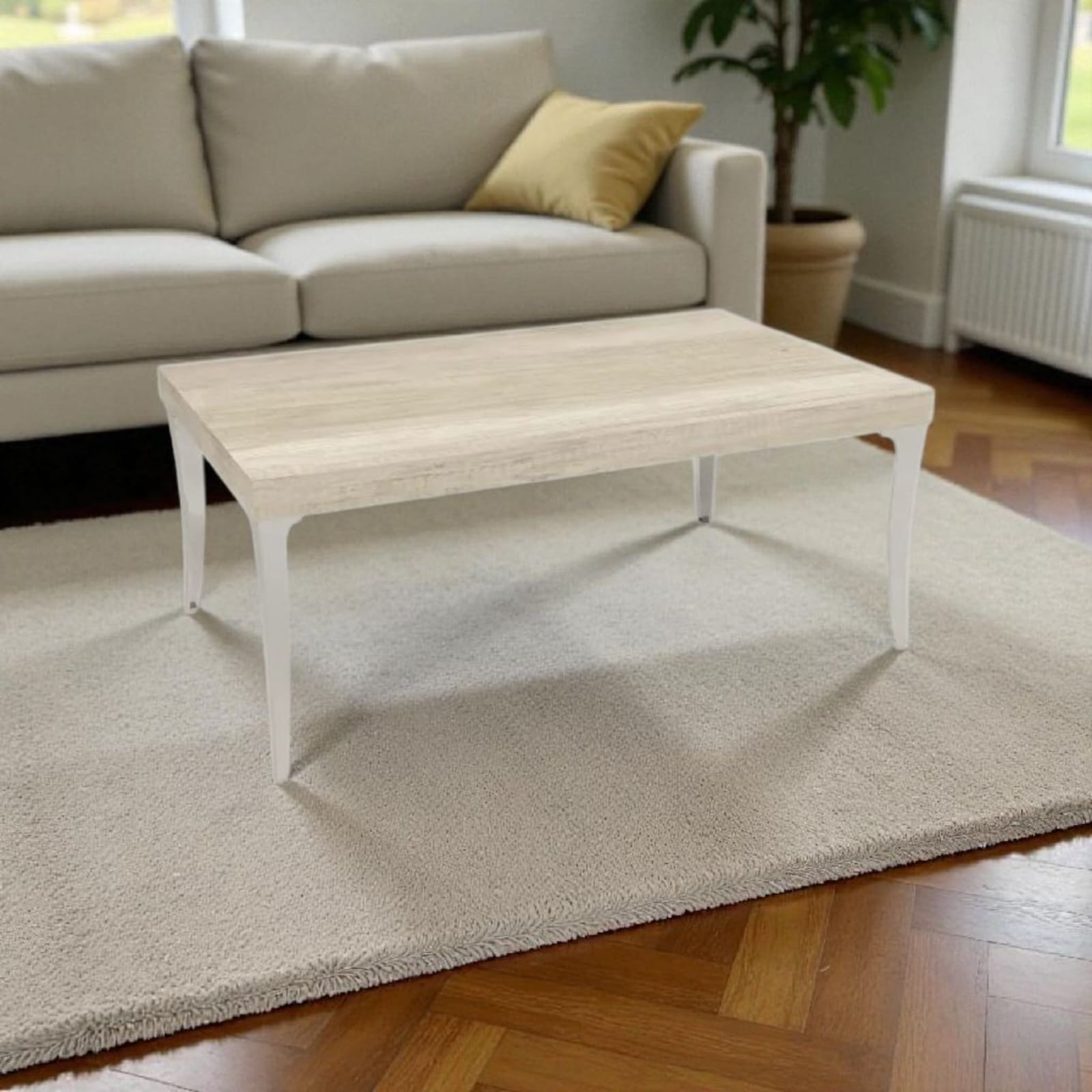 Mesa de living simple y minimalista. Con sus patas curvas de aluminio aporta elegancia a tu hogar.