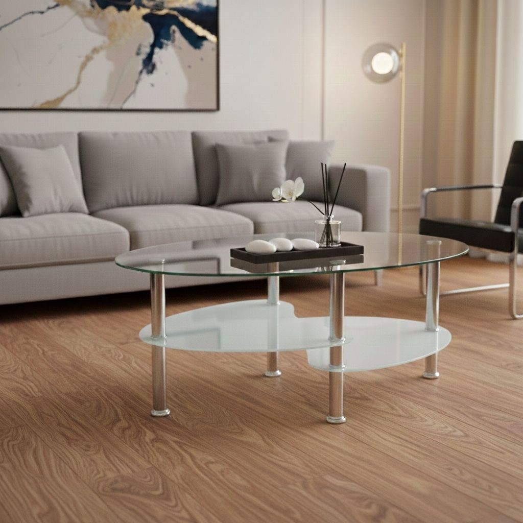 - Vidrio: Tapa transparente ovalada y estante transparente templado