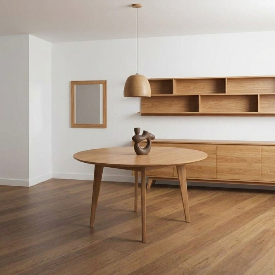 Nuestra Mesa Retro Redonda combina diseño y calidez en una pieza funcional y elegante. Disponible en 1.20 m y 0.90 m de diámetro, se adapta perfectamente a espacios pequeños sin perder estilo.