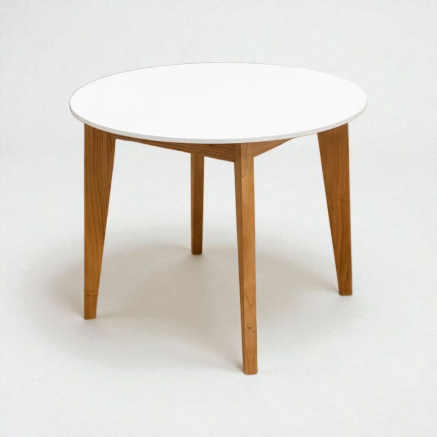 Su tapa laqueada en blanco aporta luminosidad y un acabado suave al tacto, mientras que las patas en paraíso le dan la calidez natural de la madera y una estética nórdica que combina con cualquier estilo.