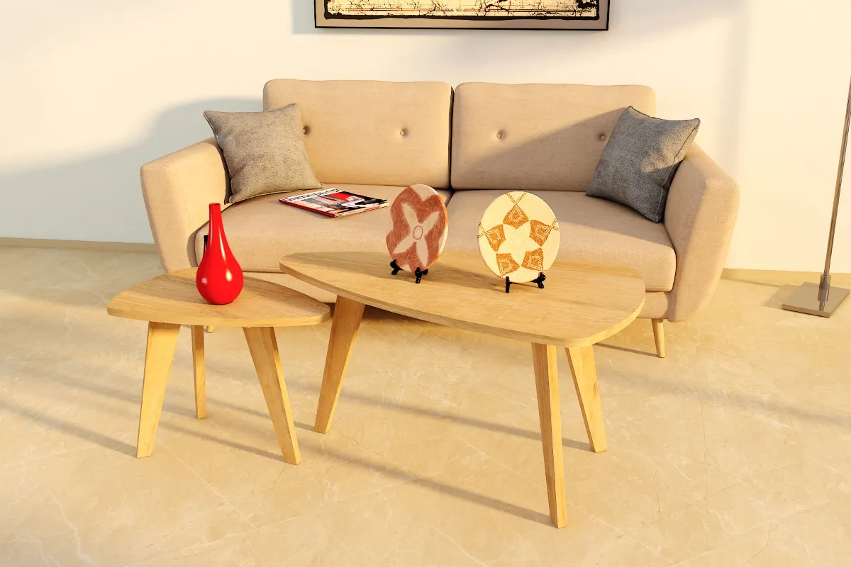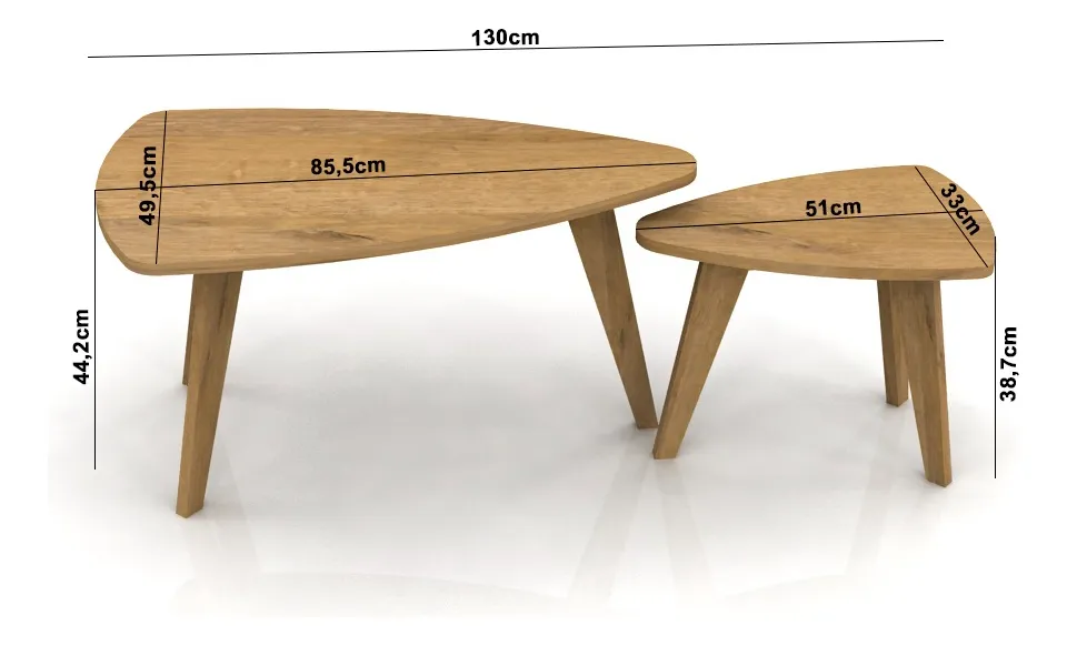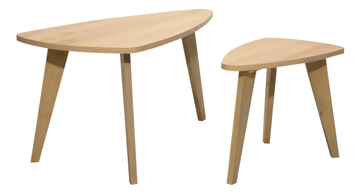 Descubre el elegante Set de 2 Mesas Ratonas Oval Modernas Nórdico Escandinavo, un conjunto ideal para realzar la decoración de tu hogar. Este set de dos mesas bajas de living combina funcionalidad y estilo, con una línea escandinava que aporta un toque contemporáneo. La mesa más grande mide 85 x 49 x 44 cm, mientras que la más pequeña tiene dimensiones de 51 x 33 x 39 cm, perfectas para adaptarse a cualquier espacio. Ambas mesas cuentan con patas de madera maciza, garantizando durabilidad y resistencia.