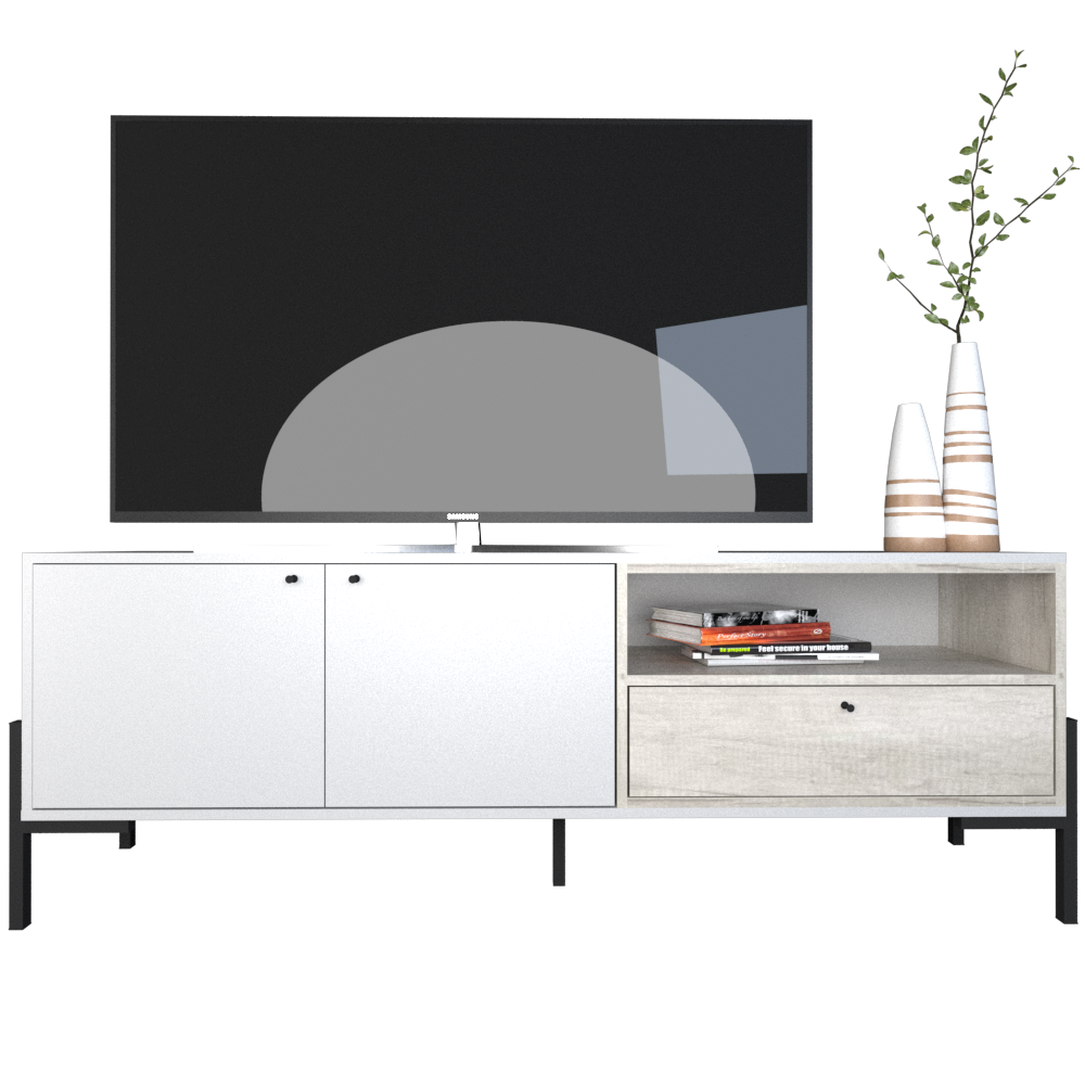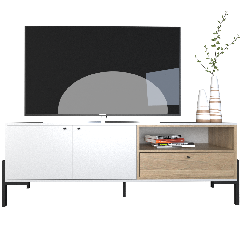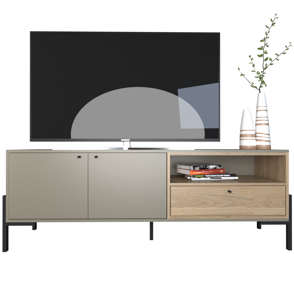 Descubre el Rack 1,50m. , un mueble que combina funcionalidad y estilo moderno. Con patas metálicas tipo industrial y regatones de goma, este rack no solo aporta un toque contemporáneo a tu espacio, sino que también protege tus pisos de posibles daños. Su interior garantiza un acabado de calidad, mientras que las bisagras y tiradores metálicos aseguran durabilidad y resistencia. Lo convierte en una opción ideal para el uso diario. Este rack es perfecto para quienes buscan una combinación de diseño moderno y practicidad en su hogar.