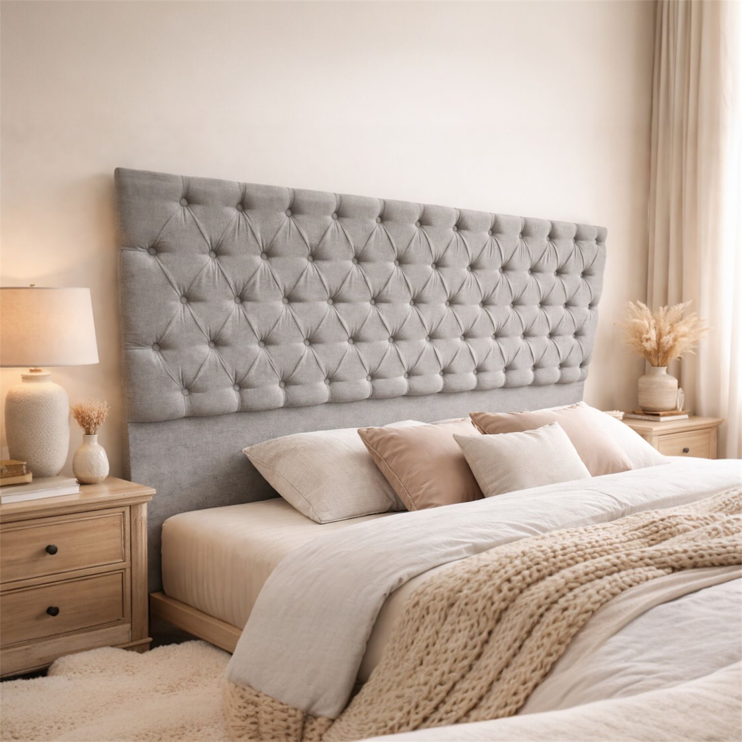 Elegancia, confort y estilo se unen en nuestro respaldo Capitone, un clásico que transforma tu dormitorio en un espacio único.