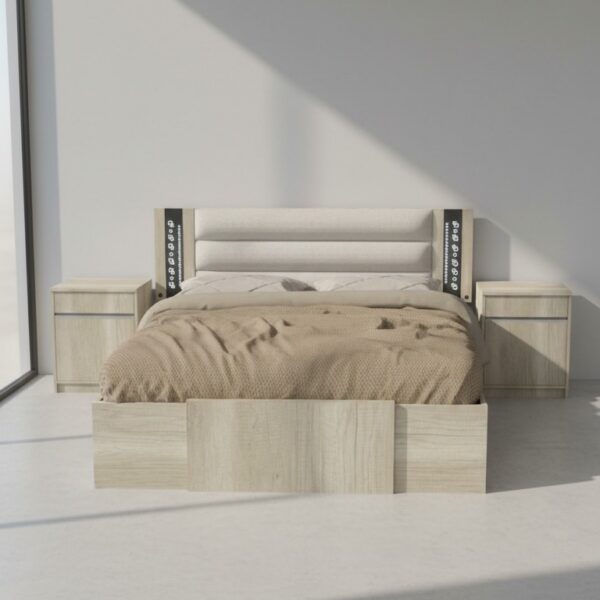 Tapizado en una tela anti manchas a elección, permite personalizarlo según tu estilo manteniendo siempre un acabado prolijo y fácil de mantener.