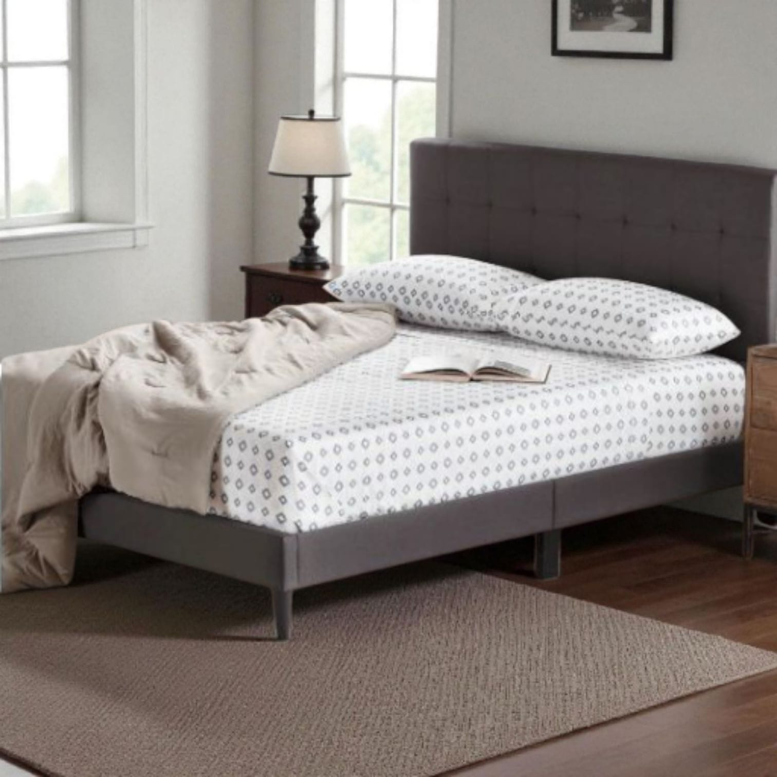 Su superficie lisa con falso capitoné cuadrado ofrece un apoyo cómodo y firme, ideal para disfrutar noches de lectura, trabajar desde la cama o maratonear tu serie favorita de Netflix.