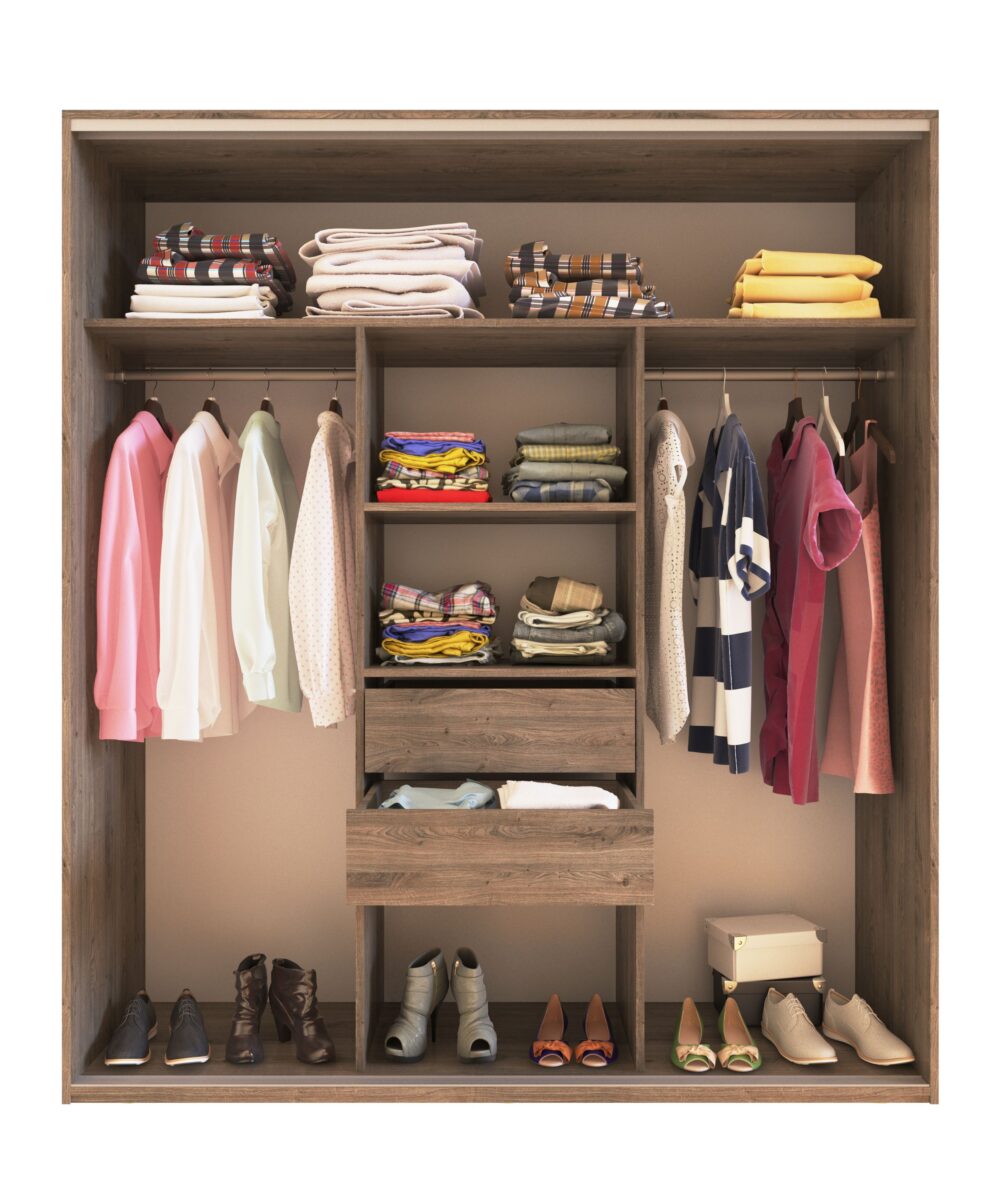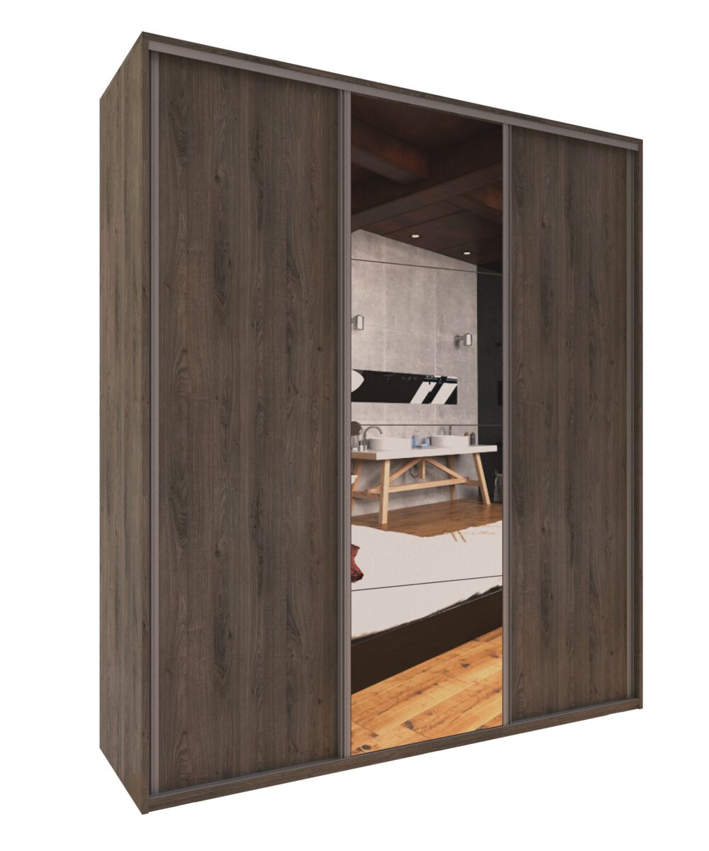 El Ropero Reflex de 3 puertas corredizas con espejo en la puerta central aúna elegancia y funcionalidad. Incluye 2 cajones y 5 estantes, ofreciendo una gran capacidad de almacenamiento. La perfilería lateral de puertas y percheros en aluminio, otorgan a este ropero una apariencia moderna y sofisticada.
