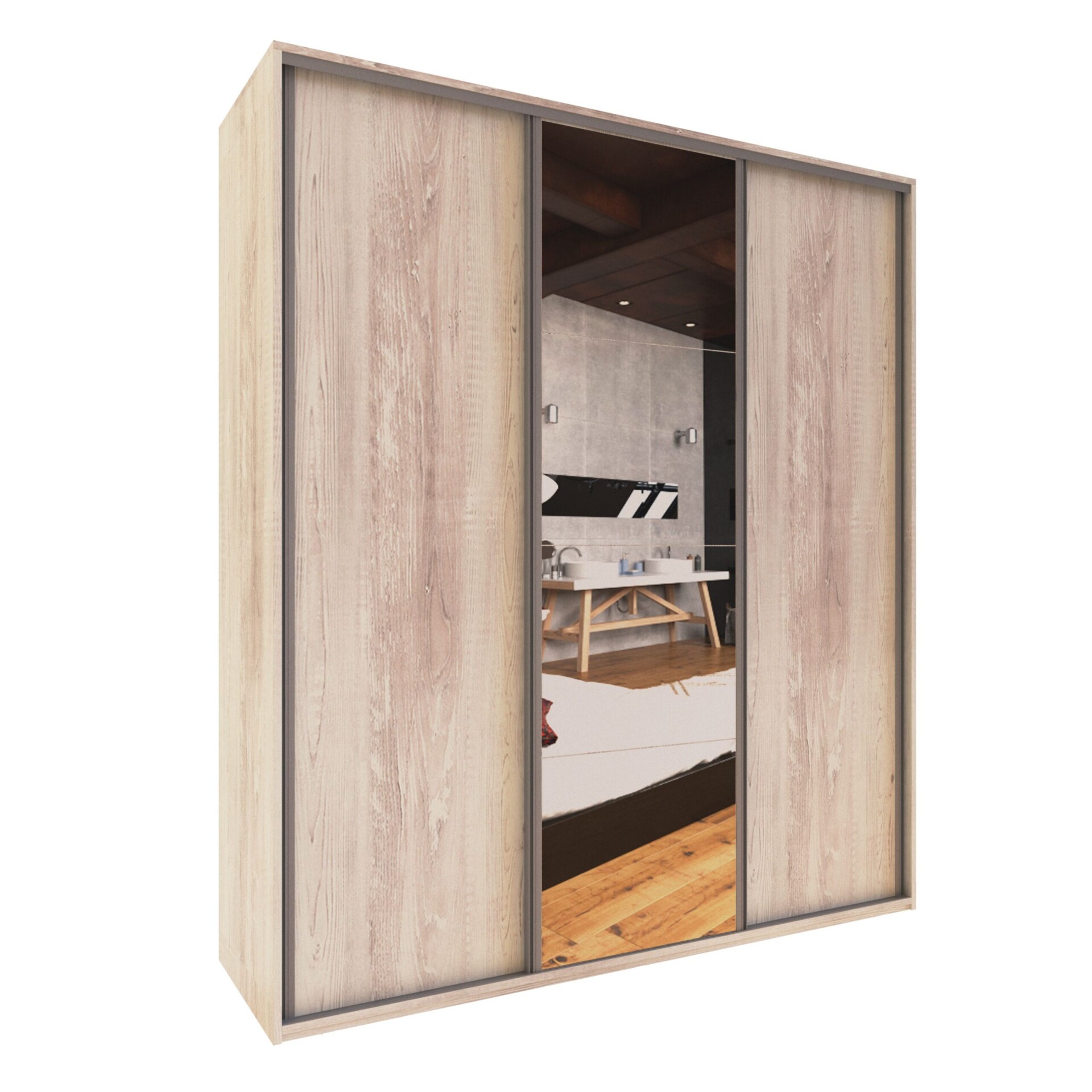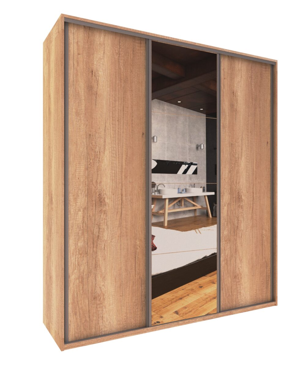 El Ropero Reflex de 3 puertas corredizas con espejo en la puerta central aúna elegancia y funcionalidad. Incluye 2 cajones y 5 estantes, ofreciendo una gran capacidad de almacenamiento. La perfilería lateral de puertas y percheros en aluminio otorga a este ropero una apariencia moderna y sofisticada.