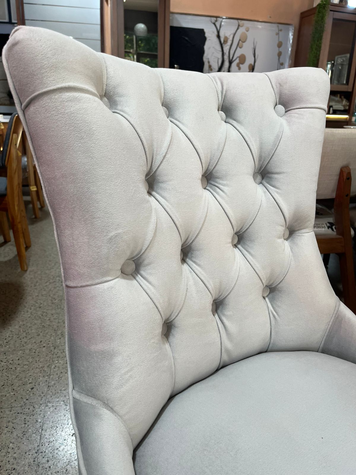 La Silla Berlín combina elegancia y confort en un diseño clásico que realza cualquier ambiente. Fabricada en madera maciza, garantiza durabilidad y firmeza, mientras que su respaldo con capitoné y tachas decorativas en la parte trasera aporta le da carácter y estilo, ideal para espacios que buscan distinción en cada rincón. Tapizada en pana antimancha a elección, se adapta a tu gusto y estilo, manteniendo siempre una apariencia impecable y fácil de limpiar.