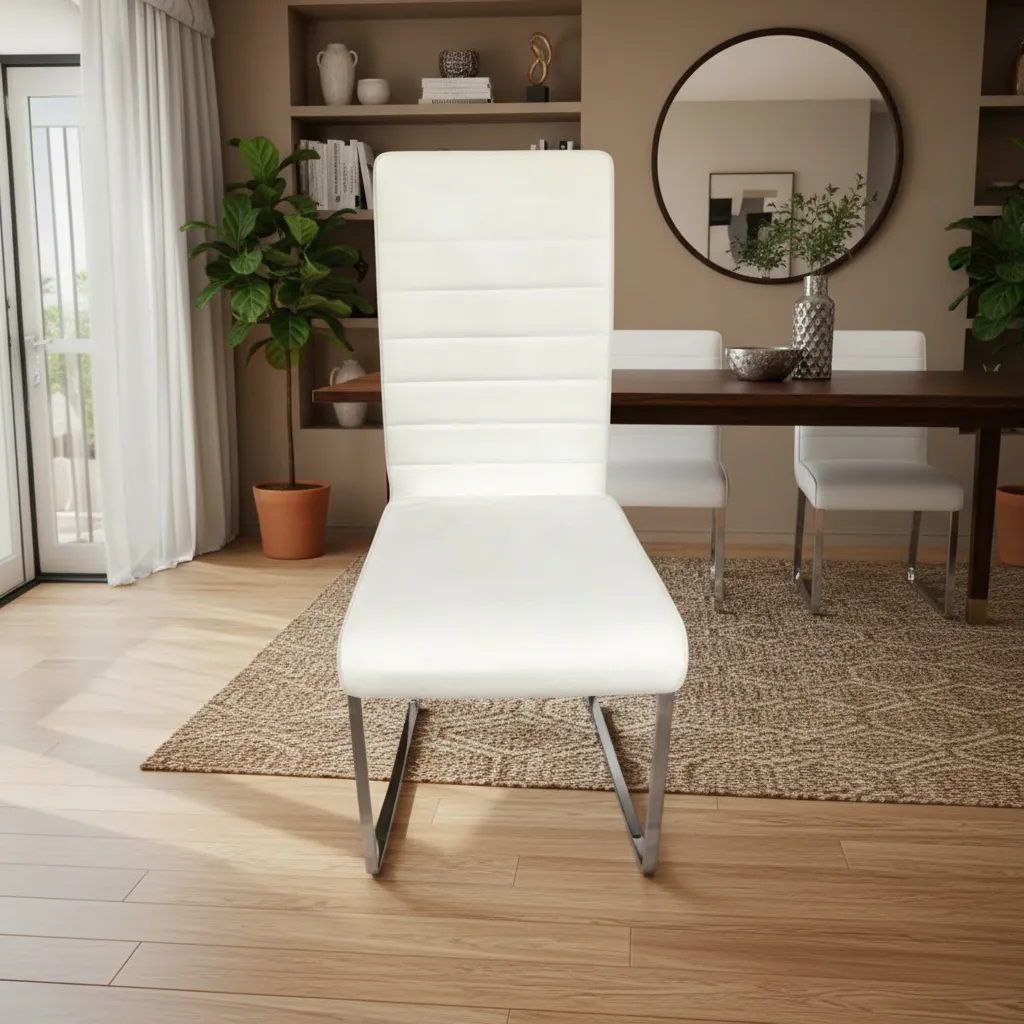 Estructura metálica cromada con asiento tapizado en ecocuero y relleno espuma de alta densidad.