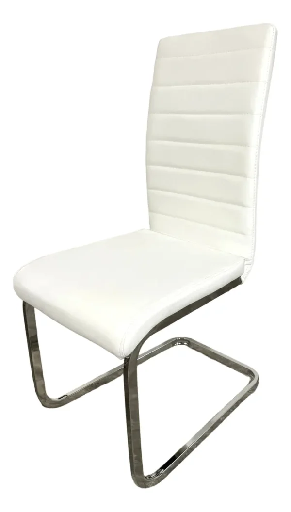 Estructura metálica cromada con asiento tapizado en ecocuero y relleno espuma de alta densidad.