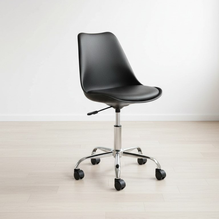 La silla de oficina Tulip combina elegancia y funcionalidad con un diseño minimalista que se adapta a cualquier espacio. Su asiento acolchado brinda comodidad durante largas jornadas de trabajo. Disponible en blanco, negro y gris, es una opción versátil que complementa cualquier estilo de decoración.