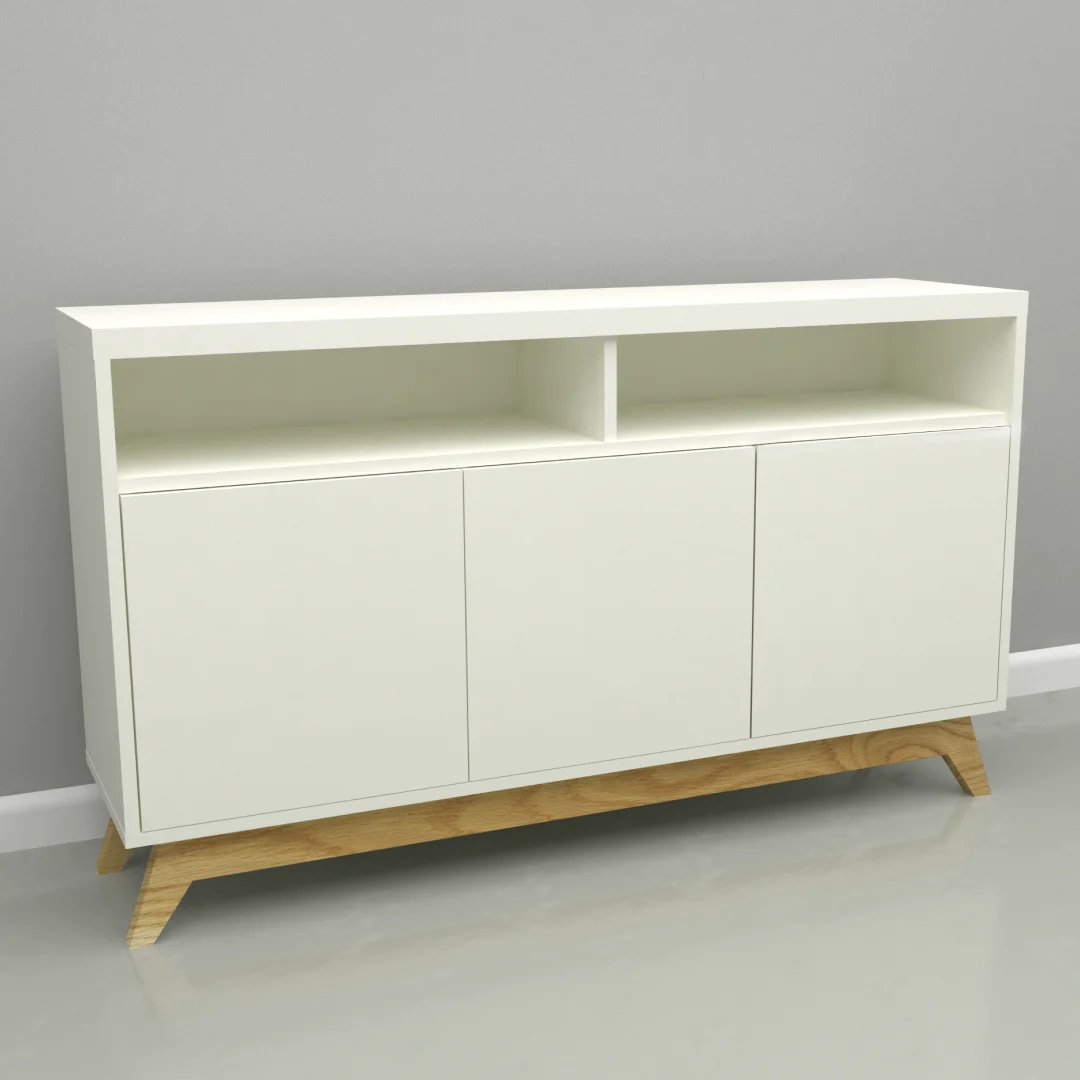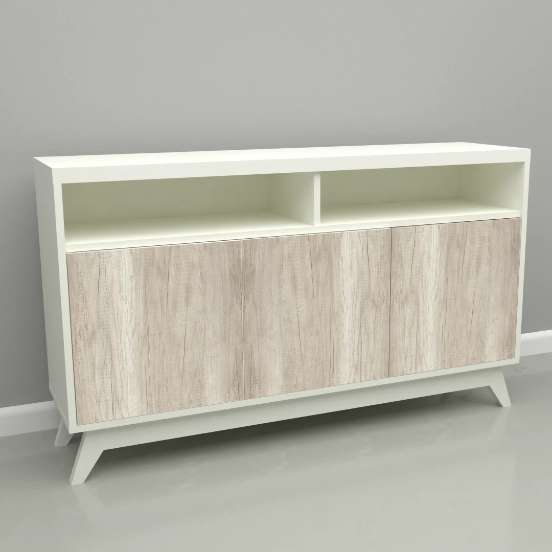 Equipado con bisagras codo reforzadas y patas de madera maciza laqueadas, el Vajillero Artica combina resistencia, estilo y practicidad en una sola pieza.